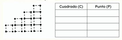 2. Observa y explora el patrón que se esconde, aplicando las técnicas matemáticas necesarias. ¿encuentras alguna relación entre el número de cuadrados y el número de puntos?
